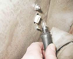 6. Для снятия указателя поворота вынимаем из фонаря патрон (см. выше) и торцовым ключом на 8 мм отворачиваем две гайки крепления указателя.