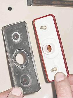 7. С наружной стороны крыла вынимаем указатель и снимаем с него резиновое уплотнение.