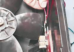 12. Отсоединяем наконечник красного провода, идущего к вентилятору, от штекера дополнительного резистора.