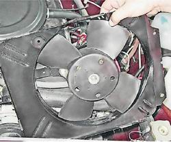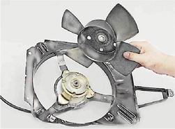 Электровентилятор радиатора - снятие и установкаЭлектровентилятор радиатора состоит из электродвигателя, крыльчатки и кожуха. Электровентилятор снимаем для замены его деталей или при снятии радиатора. Снятие 1. Разъединяем колодки проводов электродвигателя крыльчатки.