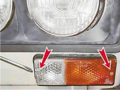 Фонарь габаритного света и указателя поворота - замена ламп, снятие и установка