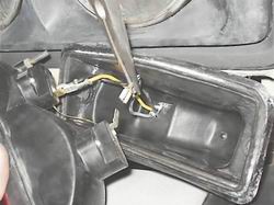 10. Пометив или запомнив расположение трех проводов, отсоединяем их от выводов фонаря.