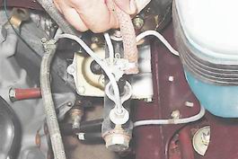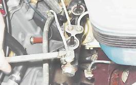 Главный тормозной цилиндр - снятие и установкаГлавный тормозной цилиндр снимаем для его замены, а также при замене вакуумного усилителя тормозов. Для выполнения работы потребуется помощник, а также специальный ключ на 10 мм для тормозных трубок, прозрачная виниловая трубка подходящего диаметра, емкость для слива тормозной жидкости, свежая тормозная жидкость (см. "Эксплуатационные жидкости"). Снятие 1. Подготавливаем автомобиль к выполнению операций (см. "Подготовка автомобиля к TO и ремонту"). 2. Резиновой грушей отбираем тормозную жидкость из бачка. 3. Ослабив хомуты, снимаем со штуцеров цилиндра два гибких шланга.