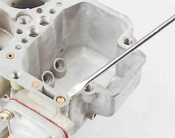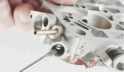 5. Под воздушными жиклерами в колодцах установлены эмульсионные трубки. Поддев подходящим инструментом, извлекаем их из колодцев. Для этой операции можно использовать надфиль с сужающейся рабочей поверхностью.