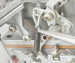 17. Отсоединяем пневмопривод дроссельной заслонки (см. "Пневмопривод дроссельной заслонки - снятие и установка"). 18. Крестовой отверткой отворачиваем два винта крепления корпуса дроссельных заслонок к корпусу карбюратора.
