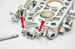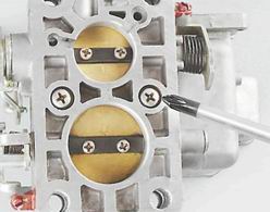 6. Шлицевой отверткой отворачиваем клапан-винт ускорительного насоса.