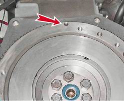 1. Устанавливаем маховик и равномерно, с диаметрально противоположных сторон, затягиваем болты его крепления к коленчатому валу моментом 60,1-87,4 Н·м.