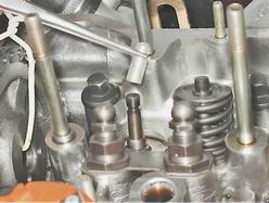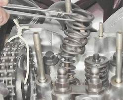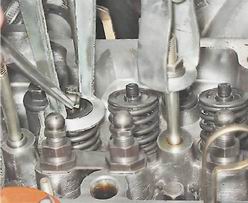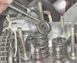6. Сжав рассухаривателем пружины клапана, извлекаем из его проточки два сухаря.