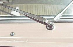 10. Выводя валы рычагов из отверстий в кузове, снимаем стеклоочиститель.