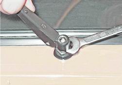 9. Торцовым ключом на 10 мм отворачиваем две гайки крепления мотор-редуктора к кузову.