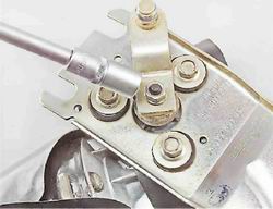Установка 1. Перед установкой промываем тяги с рычагами от грязи. Смазываем шарниры рычагов пластичной смазкой. 2. Подсоединяем колодку разъема нового мотор-редуктора к колодке жгута электропроводки. Подсоединяем провод к отрицательному выводу аккумуляторной батареи. Включив зажигание, включаем на короткое время прерывистый режим работы стеклоочистителей. При этом вал мотор-редуктора установится в положение соответствующему крайнему левому положению щеток стеклоочистителей. Выключаем зажигание, отсоединяем провод от отрицательного вывода аккумуляторной батареи. 3. Отсоединяем разъем мотор-редуктора. 4. Соединяем кривошип А с тягой Б. Устанавливаем рычаг на шлицевой вал мотор-редуктора, ориентируя его в положении, чтобы кривошип и тяга были параллельны.