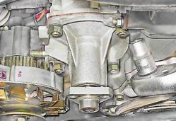 9. Для облегчения снятия насоса обстукиваем его крышку молотком с пластмассовым или резиновым бойком. 10. Снимаем насос со шпилек. 11. Между насосом и его корпусом установлена уплотнительная прокладка, которую необходимо заменить. Установка 1. Устанавливаем снятые детали в обратной последовательности. 2. Регулируем натяжение ремня генератора (см. "Ремень привода генератора - регулировка натяжения и замена"). 3. Заливаем жидкость в систему (см. "Охлаждающая жидкость - проверка уровня и замена"). |