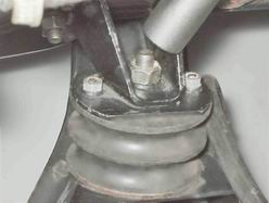 4. Через отверстие в поперечине тем же инструментом отворачиваем гайку нижнего крепления опоры.