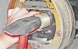 7. Отвернув болты, снимаем колесо и вынимаем полуось. Между фланцем балки и тормозным щитом установлено резиновое уплотнительное кольцо, не потеряйте его.