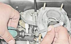 2. Снимаем корпус воздушного фильтра со шпилек карбюратора (см. "Корпус воздушного фильтра - снятие и установка").