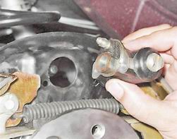 8. Снимаем рабочий цилиндр заднего колеса с тормозного щита.