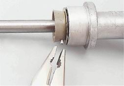 4. Пассатижами вынимаем штифт из маслоотражательного кольца.
