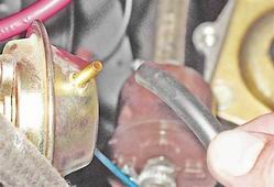 5. Снимаем со штуцера вакуумного регулятора шланг подвода разрежения.
