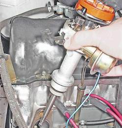8. Вынимаем распределитель из отверстия в блоке цилиндров.