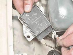 Регулятор напряжения установлен в моторном отсеке на верхней части левого брызговика. Если аккумуляторная батарея на автомобиле постоянно перезаряжается (выкипает электролит и постоянно приходится доливать дистиллированную воду), возможно неисправен регулятор.