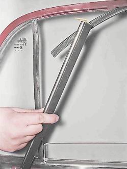 8. Снимаем верхнюю часть направляющей с уплотнителя неподвижного стекла.