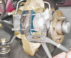 2. Отвернув болты крепления суппорта, снимаем его с тормозного диска.
