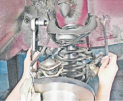 5. Вынимаем ось и снимаем верхний рычаг подвески.