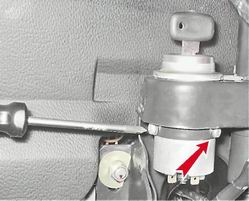 5. Вставляем ключ в замок зажигания. Переводим ключ в положение "0" и слегка поворачиваем рулевое колесо вправо-влево для того, чтобы разблокировать рулевой вал. 6. Крестовой отверткой отворачиваем два винта крепления замка к кронштейну рулевого вала.
