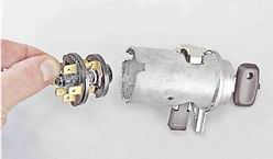 Выключатель (замок) зажигания - снятие, проверка и замена контактной группыСнятие 1. Подготавливаем автомобиль к выполнению работы (см. "Подготовка автомобиля к TO и ремонту"). 2. Отсоединяем провод от отрицательного вывода аккумуляторной батареи (см. "Аккумуляторная батарея - снятие и установка"). 3. Снимаем кожухи вала рулевой колонки (см. "Кожухи рулевого вала - снятие и установка"). 4. Отсоединяем колодку жгута проводов от контактов замка зажигания.