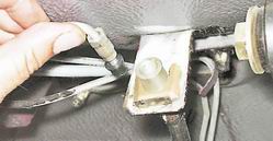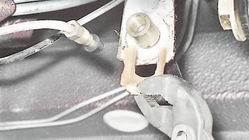 4. Пассатижами извлекаем скобу, фиксирующую шланг.