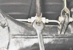 2. Специальным ключом на 10 мм для тормозных трубок отворачиваем штуцер трубки, удерживая ключом на 17 мм наконечник шланга.