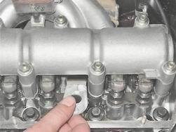 Зазор между рычагами клапанов и кулачками распределительного вала - регулировкаЗазоры регулируем на холодном двигателе. Для регулировки рекомендуется использовать набор, состоящий из щупа увеличенной ширины и двух рожковых ключей: на 13 и 17 мм, или приспособления с индикатором часового типа. Последовательность выполнения 1. Подготавливаем автомобиль к выполнению работы (см. "Подготовка автомобиля к TO и ремонту"). 2. Снимаем крышку головки блока цилиндров (см. "Прокладка крышки головки блока цилиндров - замена"). 3. Проверяем и при необходимости регулируем натяжение цепи привода газораспределительного механизма (см. "Цепь привода газораспределительного механизма - регулировка натяжения"). 4. Снимаем крышку распределителя зажигания (см. "Момент зажигания - проверка и регулировка") 5. Устанавливаем распределительный вал в положение BMT (верхней мертвой точки) такта сжатия в 4-ом цилиндре. Для этого специальным ключом на 38 мм проворачиваем коленчатый вал до совпадения метки на звездочке распределительного вала с выступом на корпусе подшипников. Наружный контакт бегунка должен быть направлен в сторону бокового электрода под номером 4 на крышке распределителя зажигания.