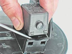 Если шланг на патрубке посажен плотно и отсоединить его не удается, можно снять клапан с адсорбера и, вращая клапан, снять с него шланг. 6. Поддев отверткой, снимаем клапан с адсорбера (для наглядности показано на снятом адсорбере).