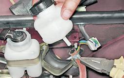 2. Доливаем жидкость в бачок до необходимого уровня, при необходимости прокачиваем систему (см. выше, "Гидропривод выключения сцепления - замена жидкости и прокачка").