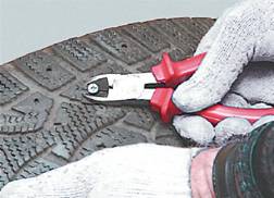 11. Срезаем выступающие части ремонтной полоски заподлицо с поверхностью шины.