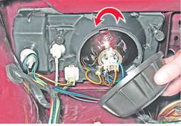 3. Повернув крышку блок-фары против часовой стрелки, снимаем ее.