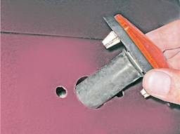 3. Подложив картонную прокладку, шлицевой отверткой с одной стороны аккуратно поддеваем корпус указателя и отжимаем его от кузова, выводя из зацепления фиксатор.