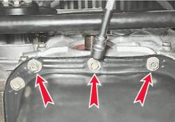 8. Тем же инструментом отворачиваем три гайки и шесть болтов крепления крышки привода распределительного вала к блоку цилиндров.