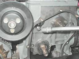 11. На карбюраторном двигателе наносим метки взаимного положения звездочки привода валика вспомогательных агрегатов относительно блока цилиндров. Это позволит избежать переустановки распределителя зажигания.