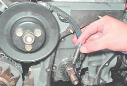 17. Извлекаем болт из отверстия блока цилиндров и снимаем башмак натяжителя.