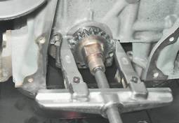 19. Съемником спрессовываем звездочку с носка коленчатого вала.