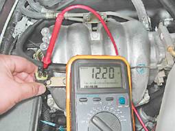 3. Подсоединяем "минусовой" щуп вольтметра к "массе" двигателя. 4. Включив зажигание, проверяем напряжение питания нагревательного элемента на выводе "В" (нумерация выводов нанесена на колодке жгута проводов).