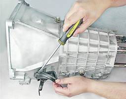 6. Шлицевой отверткой отгибаем край чехла вилки выключения сцепления и снимаем чехол.