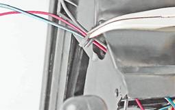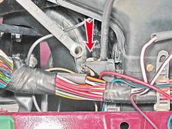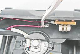 17. Отсоединяем наконечник красного провода, идущего к вентилятору, от штекера дополнительного резистора.
