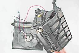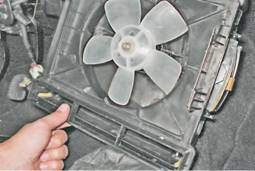 15. Снимаем кожух вентилятора и направляющий кожух вентилятора в сборе с вентилятором.