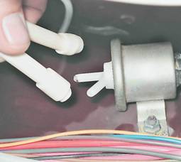 5. Для замены клапана отсоединяем провода от выводов клапана и резиновые шланги от штуцеров клапана.