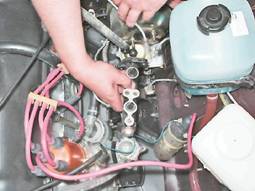 Главный тормозной цилиндр - снятие и установкаГлавный тормозной цилиндр снимаем для его замены, а также при замене вакуумного усилителя тормозов. Для выполнения работы потребуется помощник, а также специальный ключ на 10 мм для тормозных трубок, прозрачная виниловая трубка подходящего диаметра, емкость для слива тормозной жидкости, свежая тормозная жидкость (см. "Эксплуатационные жидкости"). Снятие 1. Подготавливаем автомобиль к выполнению операций (см. "Подготовка автомобиля к ТО и ремонту"). 2. Резиновой грушей отбираем тормозную жидкость из бачка. 3. Ослабив хомуты, снимаем со штуцеров цилиндра два гибких шланга.