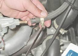 8. Отсоединяем шланг вакуумного регулятора распределителя зажигания.
