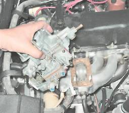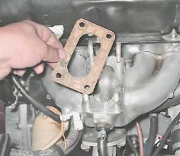 Если карбюратор снимается на продолжительное время, отверстие впускного трубопровода закрываем ветошью. Установка 1. Перед установкой рекомендуется провести проверку открытия дроссельной заслонки первичной камеры (см. "Пусковое устройство - проверка и регулировка"). 2. Установка всех снятых деталей выполняется в обратной последовательности. |