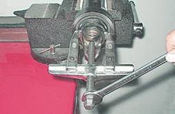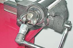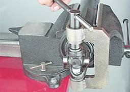 9. Аналогично выпрессовываем подшипник из вилки переднего карданного вала, зажав его в тиски, но так, чтобы не деформировать трубу.